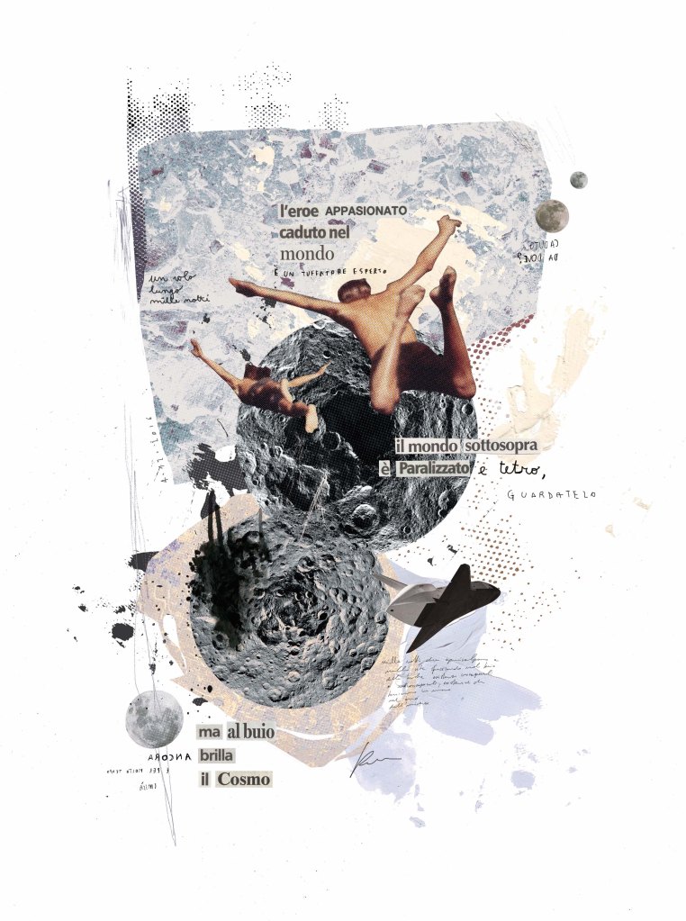 Il mondo sottosopra, violentato e depresso, letto al contrario è un paradiso che ci spetta di diritto e non un premio da guadagnare: l’eroe ribalta il ribaltabile, riflette negli occhi quella luce feroce dei milioni di anni passati a saettare per il cosmo.