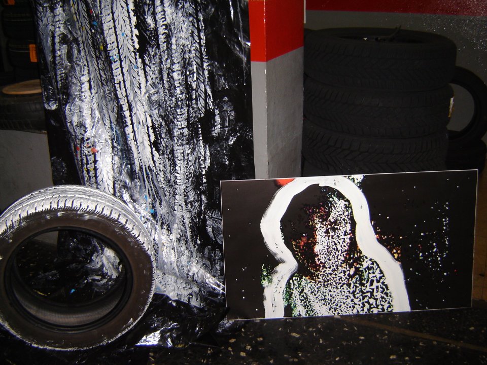 Jean Paul Charles, Performance con Nylon, Pneumatico e Vernice all’Acqua, Novembre 2011, Torino