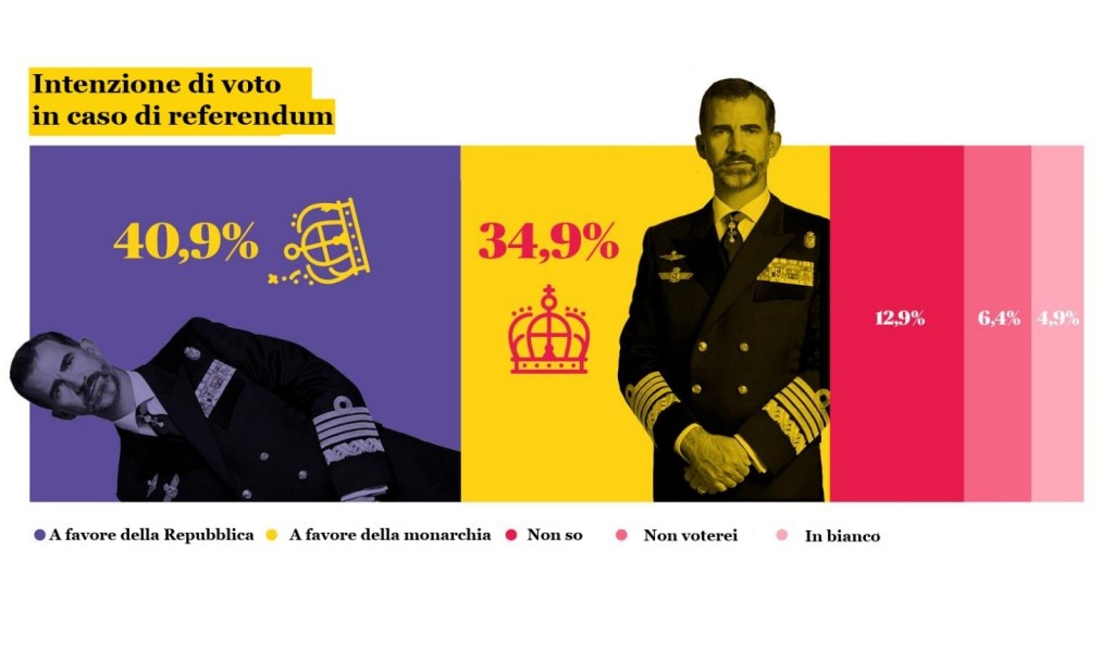 Secondo i sondaggi, il 40,9 % degli spagnoli, in caso di referendum, sarebbe favorevole alla Repubblica