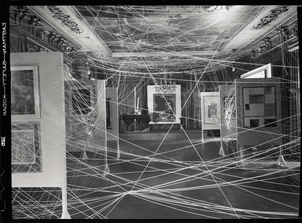 Vorrei iniziare con questa immagine dell’installazione curata da Marcel Duchamp per la mostra surrealista di Parigi del 1942. È la prima immagine che mi è venuta in mente quando ho iniziato la mostra. Quanto è importante il movimento surrealista nel suo lavoro? Fa parte della sua ispirazione?